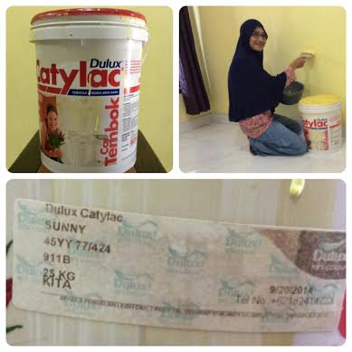Untuk membuat rumah lebih berwarna kami berencana mencat ulang dinding rumah. Sebenarnya belum satu tahun kami merenovasi dan mencat baru dinding rumah dengan menggunakan cat tempok Dulux Catylax Interior yang berwarna Sunny. Saat itu kami membeli cat yang berukuran 25kg. Ukuran ini lebih untuk mengecat semua ruangan di rumah kami, karena sebelumnya sudah melakukan simulasi berapa banyak cat yang diperlukan berdasarkan luas rumah yang akan di cat.